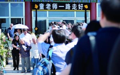 今天上午8时,记者在八宝山殡仪馆东礼堂看到,虽然追悼会是9时举行,但已经有人在此排队等候进场,送童先生最后一程。