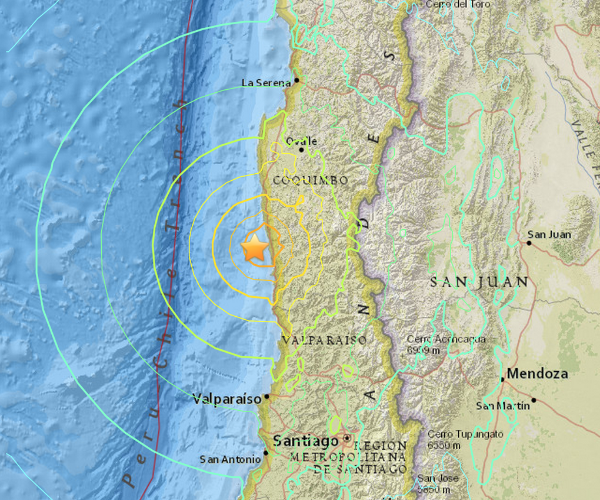中新网9月17日电 据美国地质勘探局消息,北京时间17日6时54分左右,智利西部海岸发生8.3级地震,或将引发危险海啸。