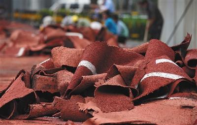 “比如使用废旧胶带加工橡胶颗粒、正常价格的10元材料在小作坊里3元就能买到。”袁义龙说,企业以符合质量要求的正常价格中标,但此后却为了多获取利益,降低成本。“比如150元每平米是最低价格,但实际铺设中,许多成本压到几十元。”如此一来,诚信的大企业拿不到订单,长此以往,只好将产品外包出去,收取一定转包费。而转包的厂家无专业资质,再加上一些无良的施工方,毒跑道现象越来越多。