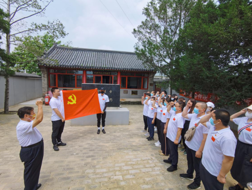 第二站到达了北安河烈士纪念堂参观,每人手执鲜花依次给各位烈士献花祭奠,并宣读了入党誓词。